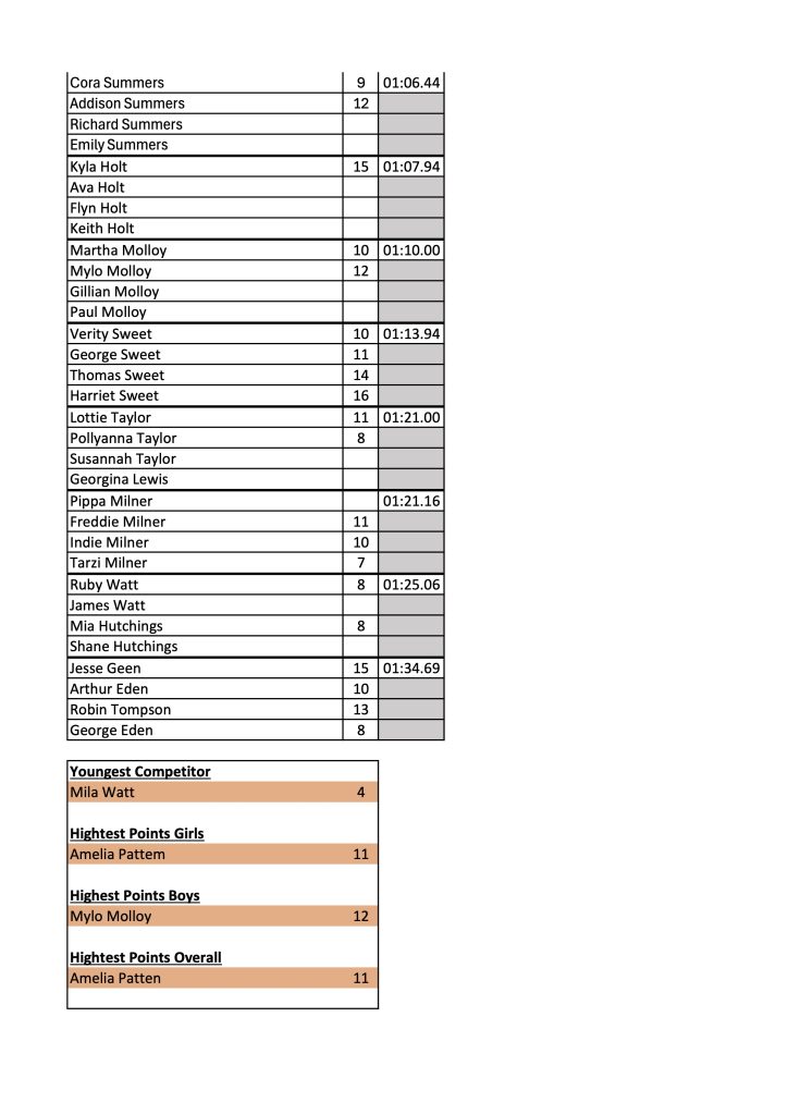 Highest Points Girls: Amelia Pattem 11